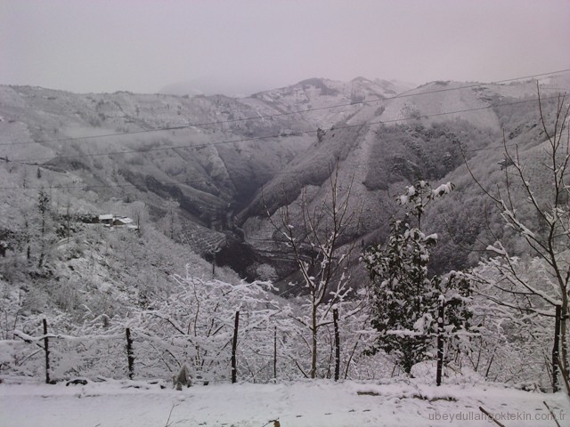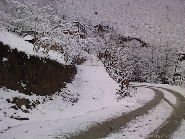 ve beklediğimiz o gün geldi. Sabah 08:30 gibi kalkmıştım, işe gitmek üzere hazırlanırken amcam zile bastı ve “köye kar yağmış, hadi köye gidelim” dedi. Öğleye kadar okulda dersi olmadığı için yarım günlük bir köy tatili yapacak sanırım. Bende kabul ettim ve birlikte köy yoluna doğru koyulduk amcamla. Yalnızca ikimiz vardık :). Köye doğru çıkarken her yükselmemizde kar miktarı biraz daha artıyor ve her geçen dakika da kar yağışı hızlanıyordu. Güneşli, soğuk ve karsız olan bir şehirden, güneşsiz, hafif soğuk ve karlı bir köye gitmenin güzelliği içerisinde yolumuza devam ettik.